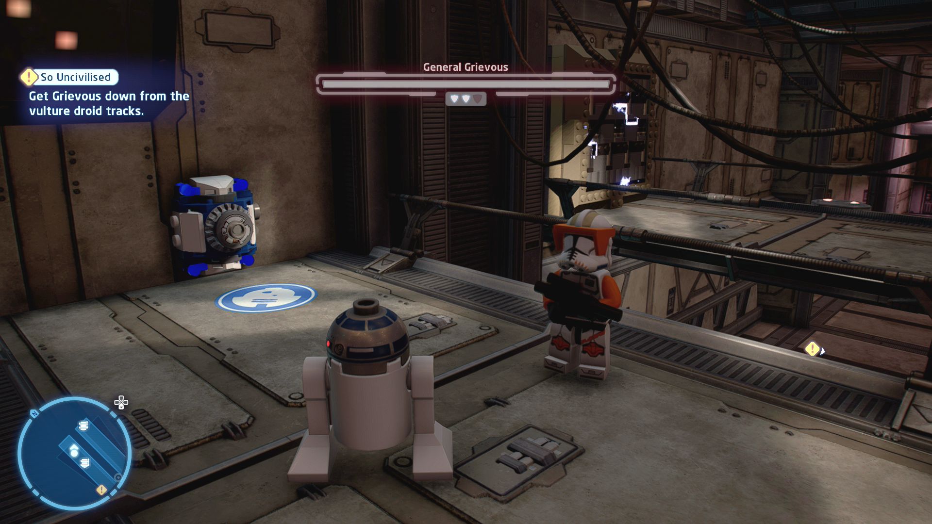 - At the very start of the level quickly switch to R2-D2 and activate the vent that Anakin is standing on.