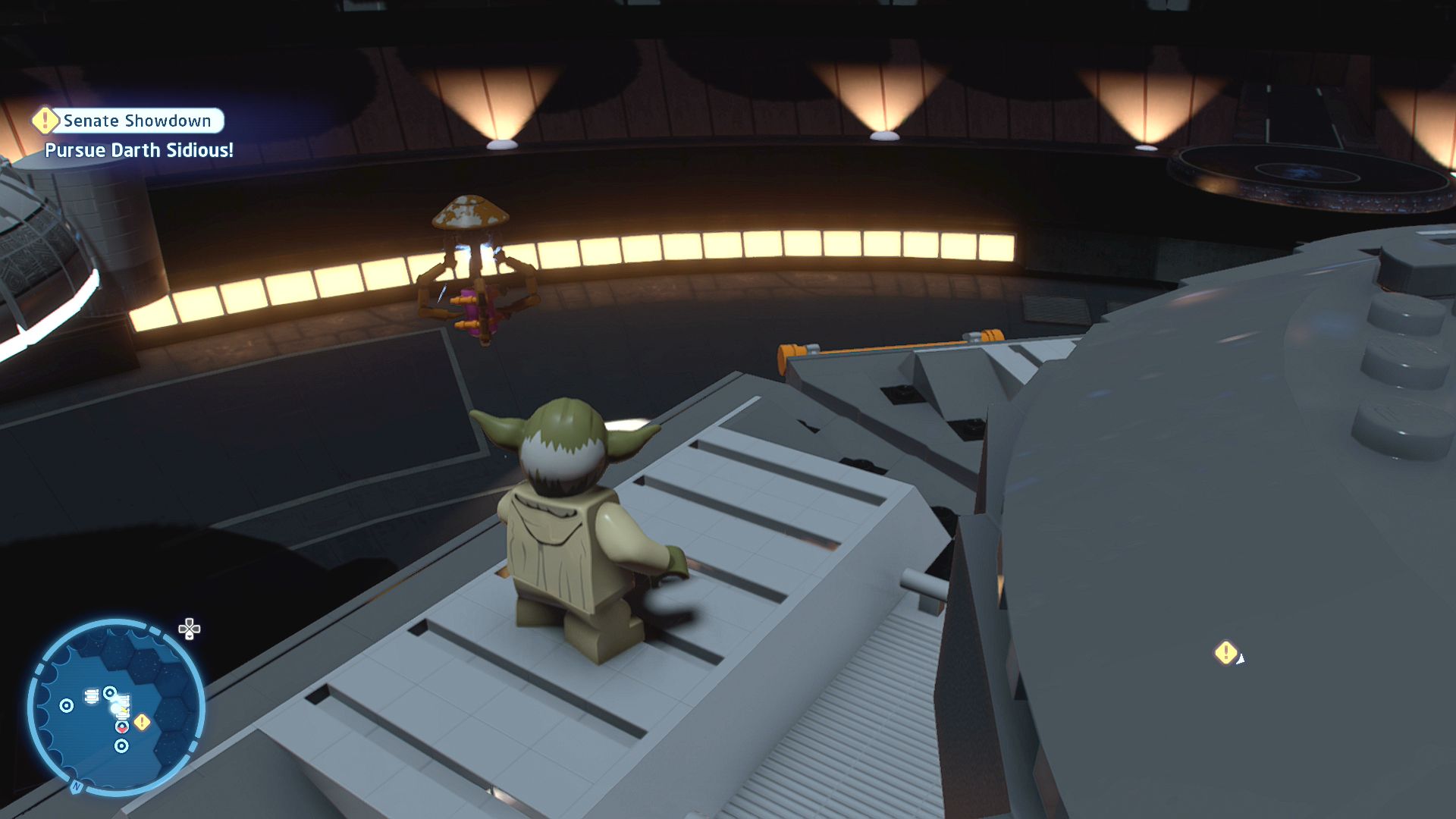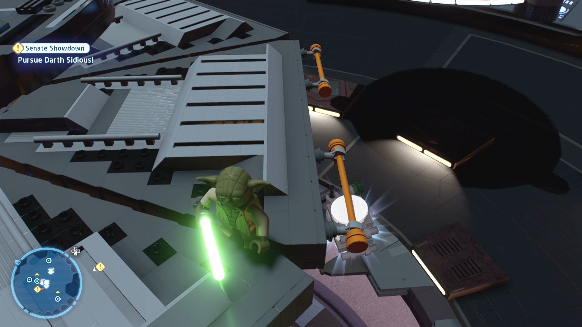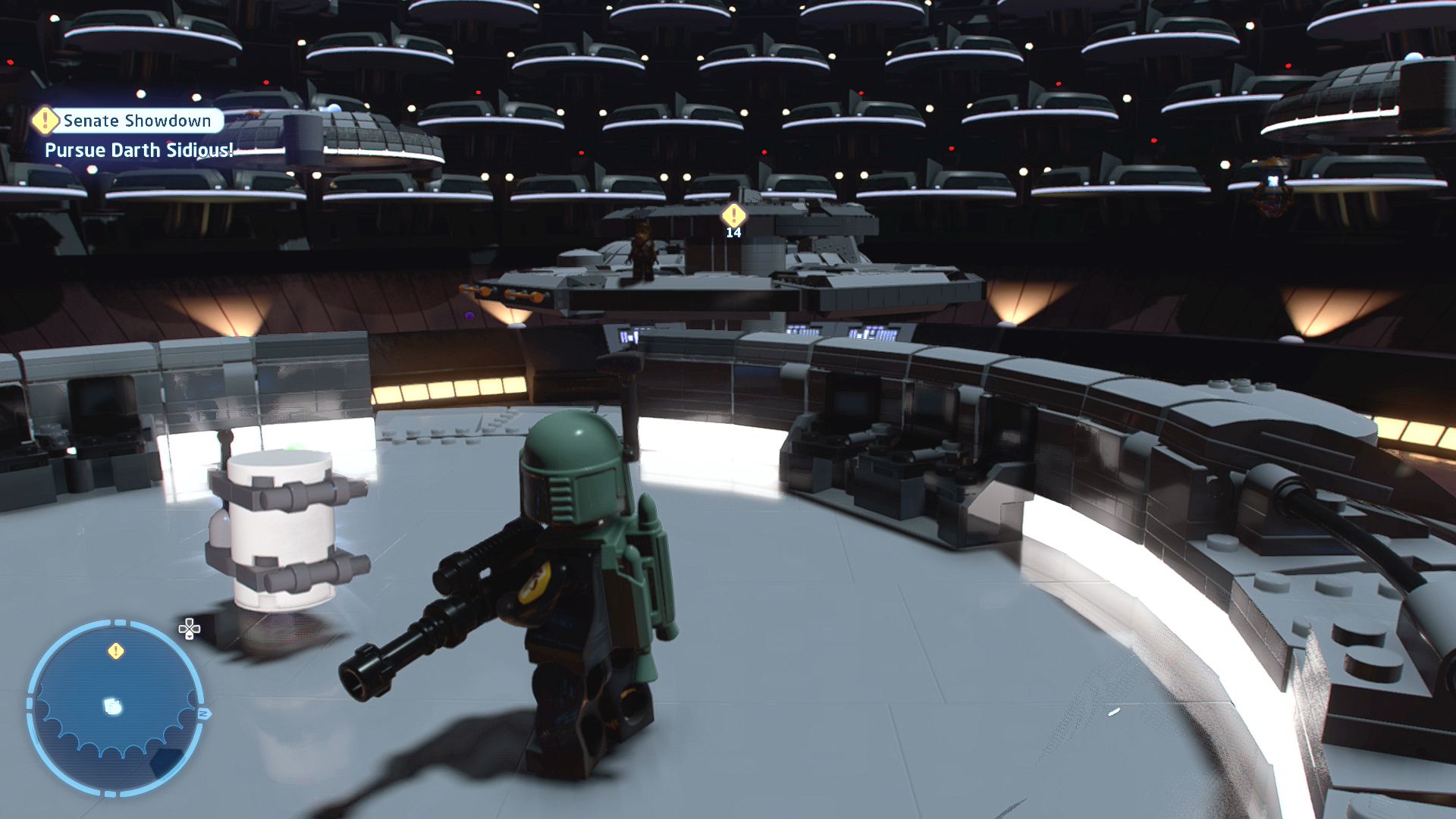 Requires: Scavenger Glider / Bounty Hunter Jetpack Story Mode: NoFind a means to cross the platforms in the senate chamber.