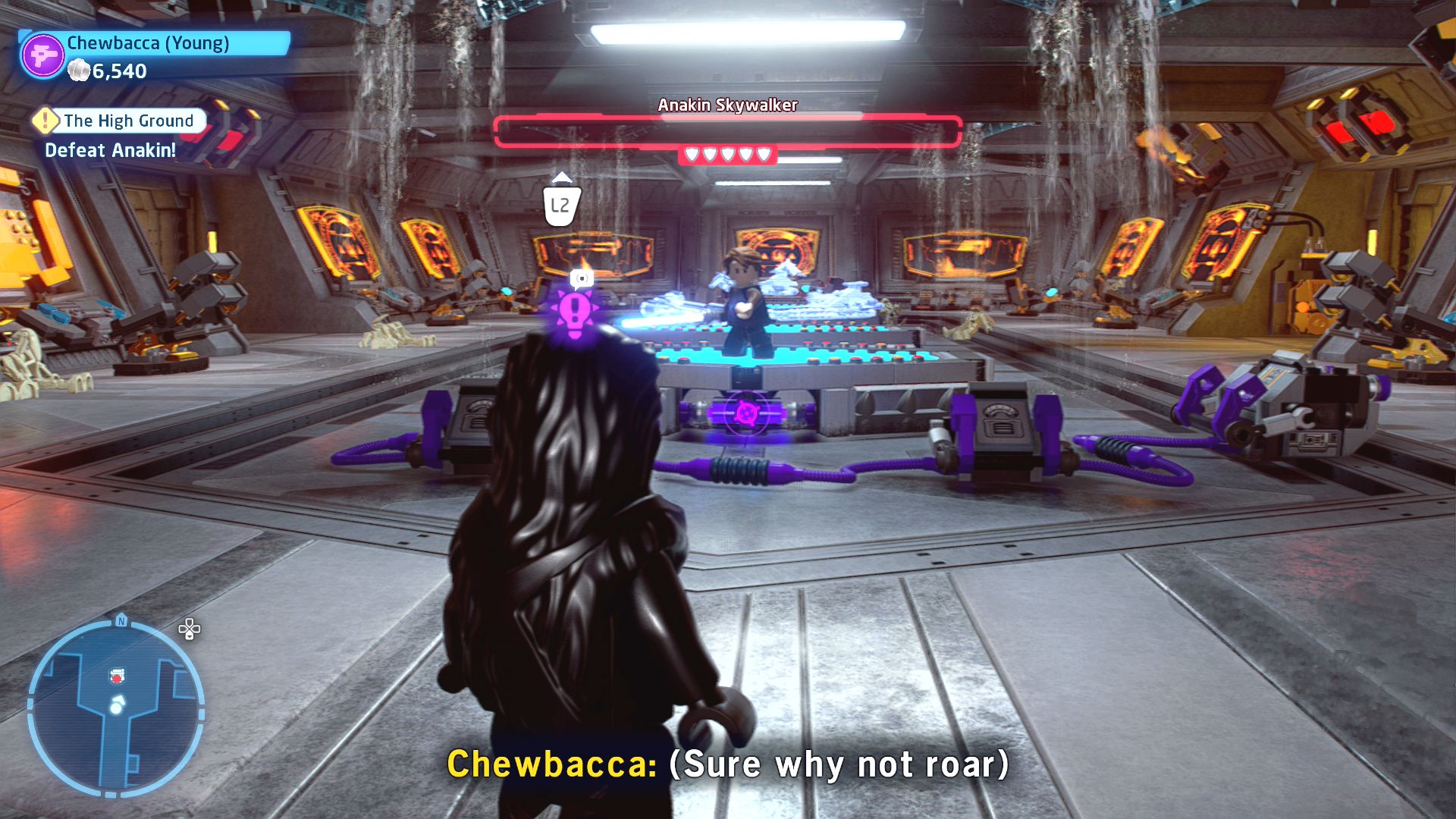 After a quick lightsaber clash it's time for the last lightsaber battle. Defeat Anakin and complete the level (and the episode) with a struggle fight.