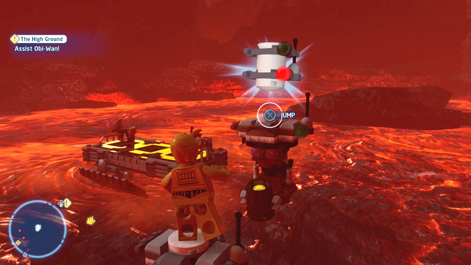 C-3PO will need to jump across the platforms and make his way to a Protocol Terminal where he can activate a droid to interrupt the fight.